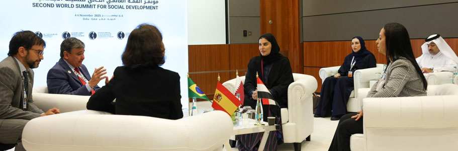 عقدت الدكتورة / مايا مرسي وزيرة التضامن الاجتماعي على هامش مشاركتها في فعاليات مؤتمر القمة العالمية الثانية للتنمية الاجتماعية بالدوحة اجتماعا مع الدكتورة / مريم بنت علي بن ناصر المسند، وزيرة الدولة للتعاون الدولي، اليوم، والسيد / ويلنتون دياز وزير التنمية والمساعدات الاجتماعية والأسرة ومكافحة الجوع في جمهورية البرازيل، والسيدة / إيفا غرانادوس غاليانو  وزير الدولة للتعاون الدولي بوزارة الخارجية بمملكة إسبانيا.