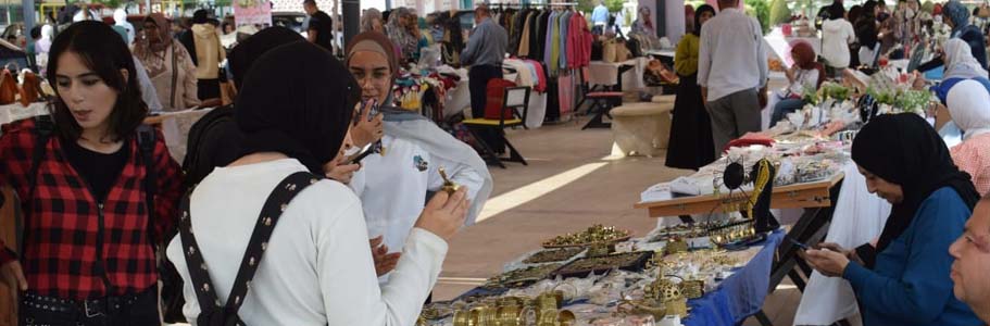 وتستمر فعاليات المعرض بالجامعة المصرية الروسية لمدة 4 أيام، وذلك بمشاركة 45 عارضا وعارضة، حيث يقدمون المعروضات التي تناسب الطلاب من منتجات خشبية وأعمال الديكورات واللوحات الرائعة المعبرة عن الأجواء المصرية الأصيلة والاكسسوارات المنزلية المطعمة ومنتجات التجميل والملابس الجاهزة بتصميماتها من ملابس الأطفال والسيدات والمنتجات والمشغولات القطنية المتنوعة من المفروشات والملابس وأشغال سيناء المتميزة بتصميماتها الرائعة وأشغال الخزف.